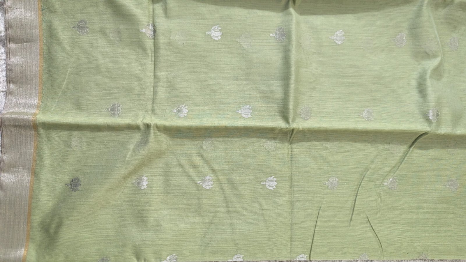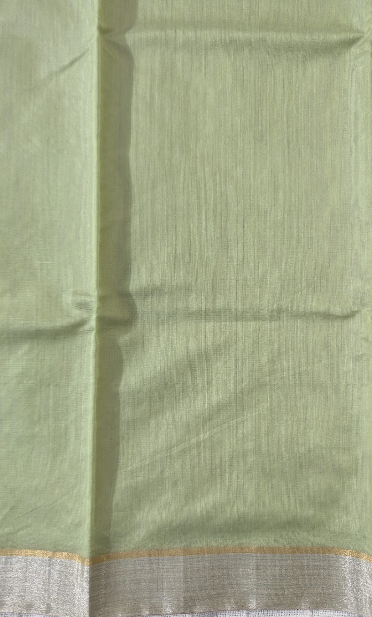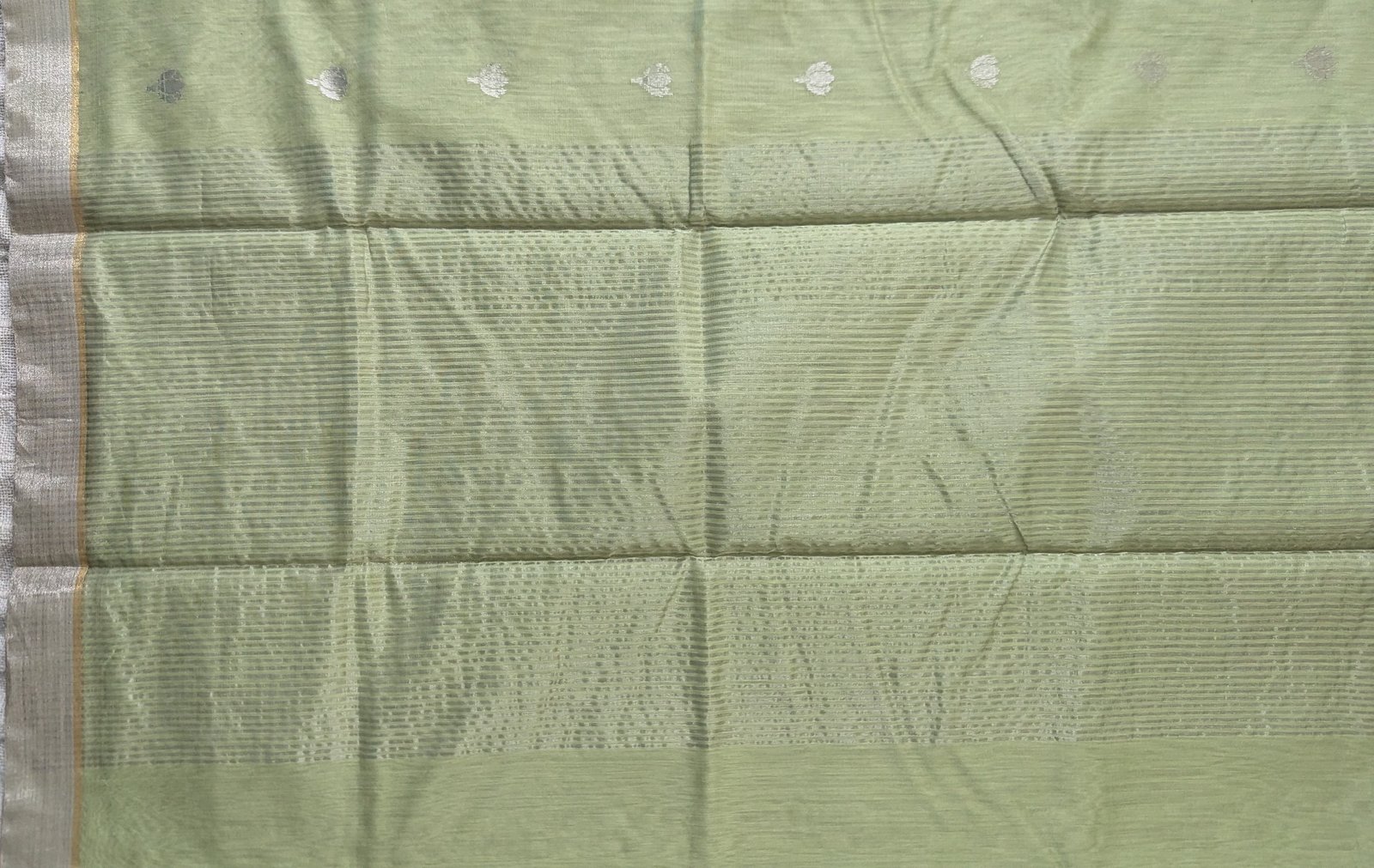 Pastel Green Handwoven Chanderi silk saree with dual border and Mogra motif