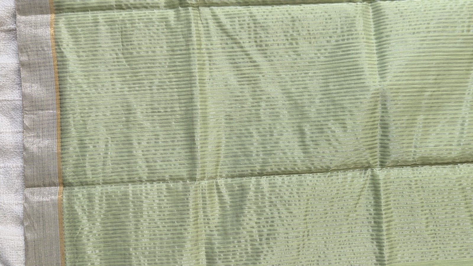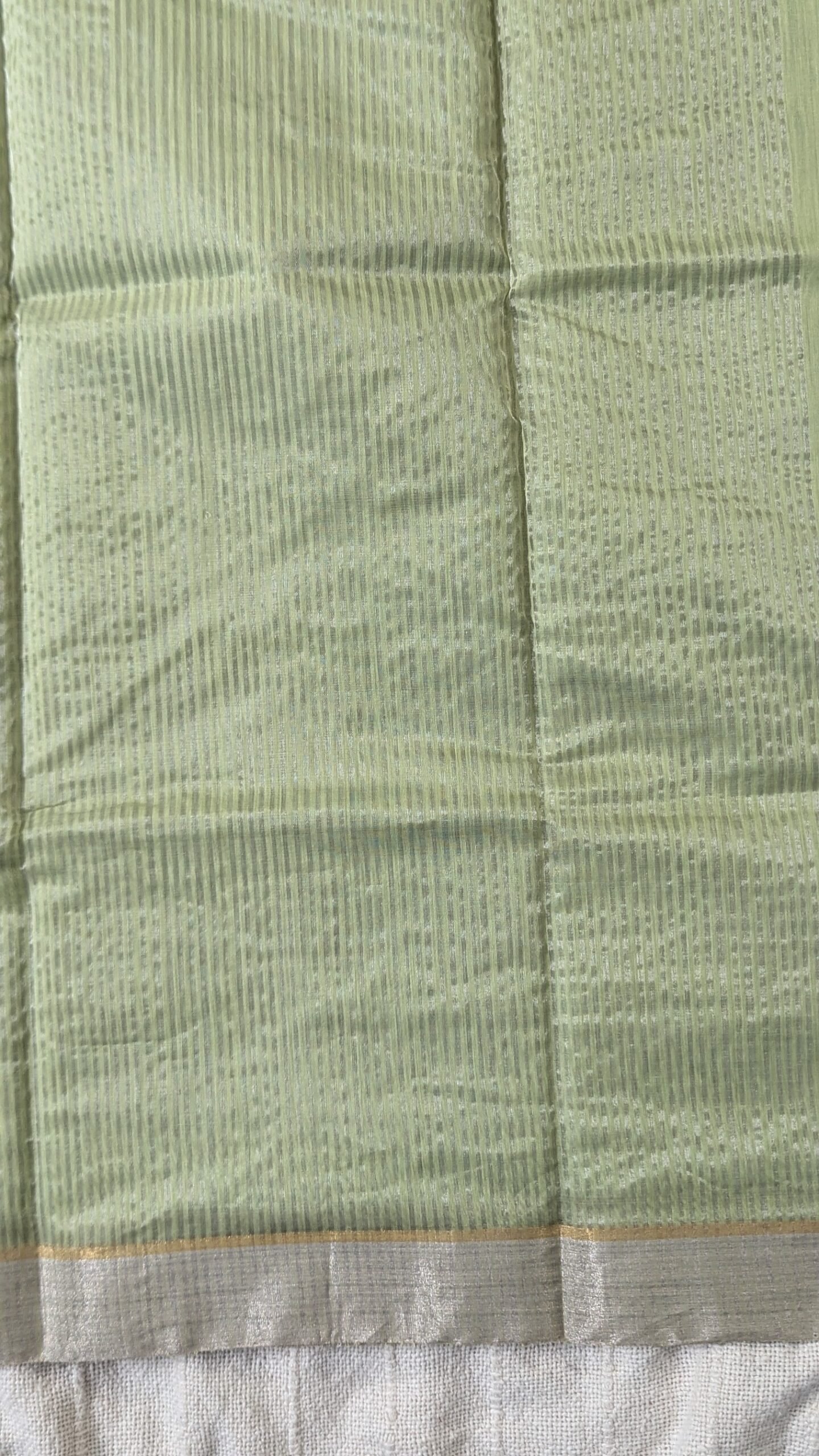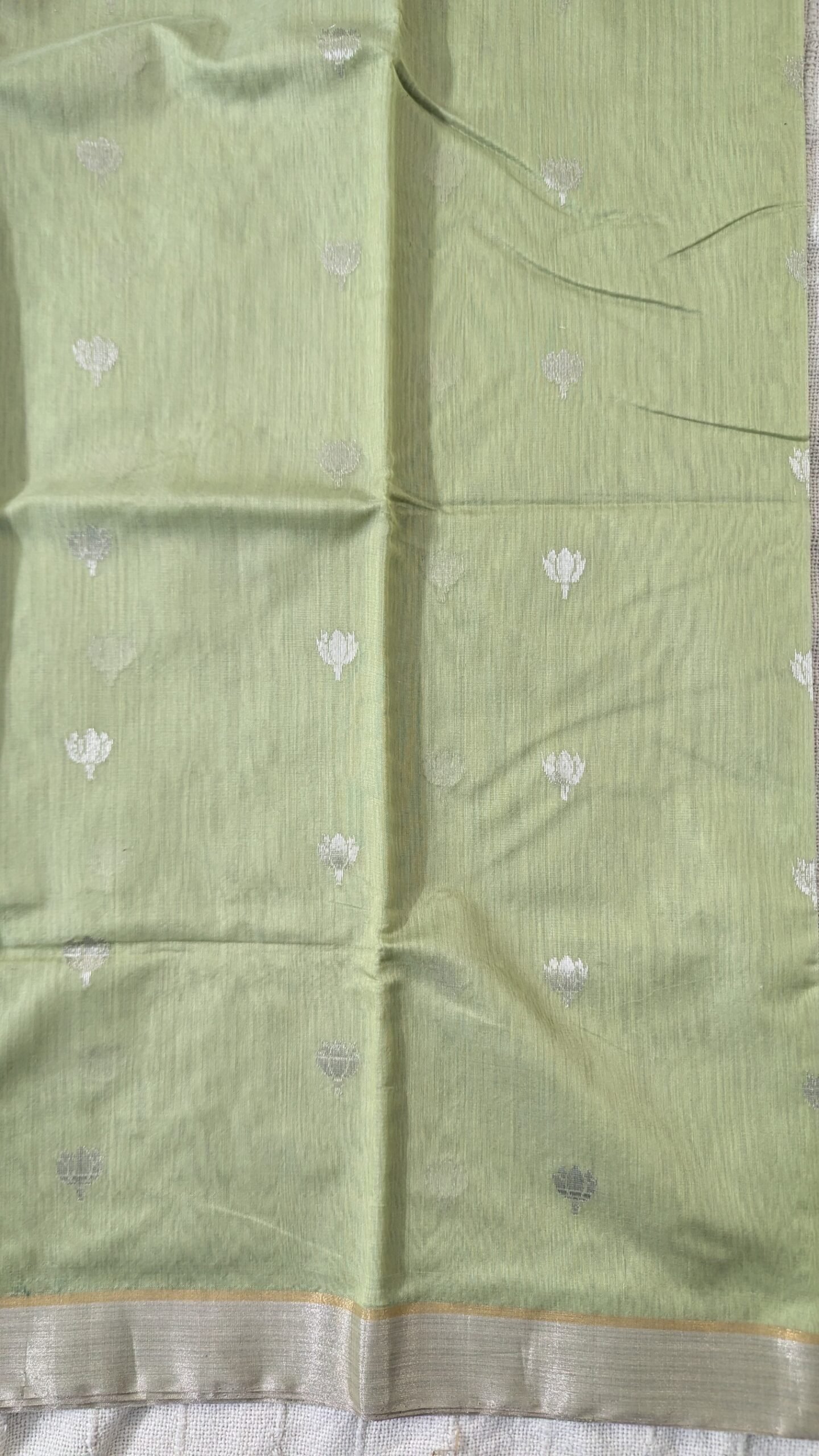 Pastel Green Handwoven Chanderi silk saree with dual border and Mogra motif